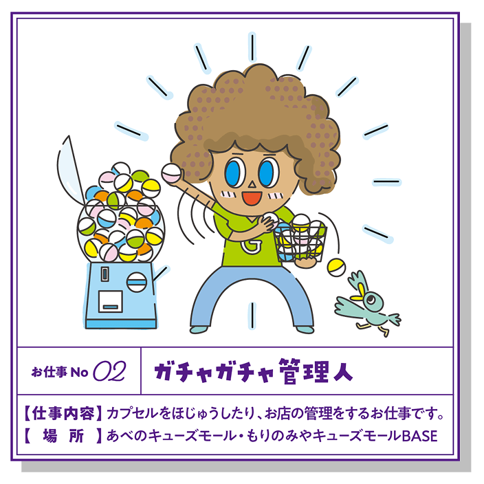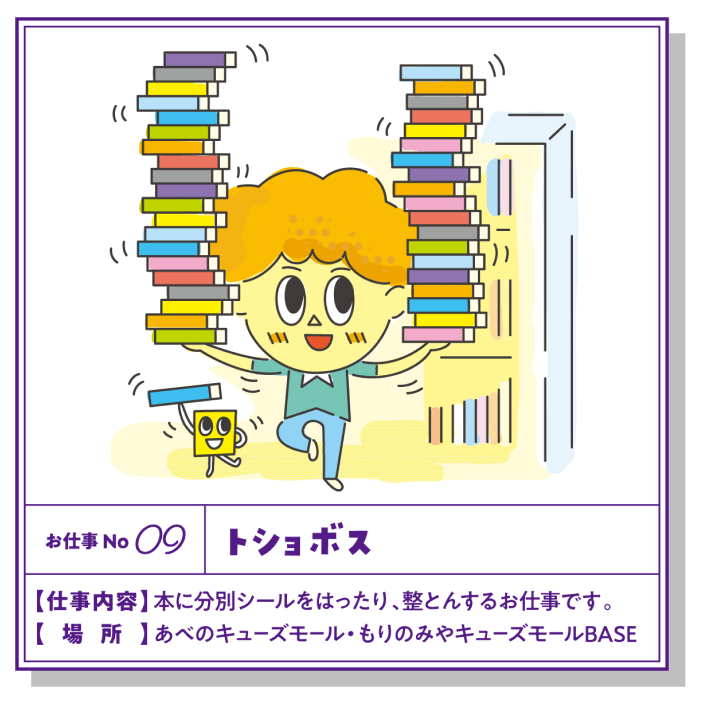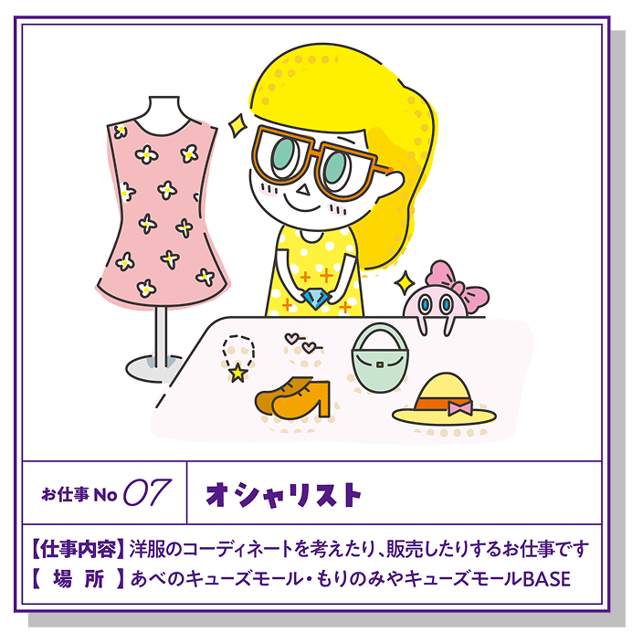 あべのキューズモール・もりのみやキューズモールBASEで働く大人と一緒に、本物の仕事にチャレンジできます。お店だけでなく、はたらくフリースクールのプロモーション動画撮影や、キューズモールの運営に関わる仕事も登場予定です。